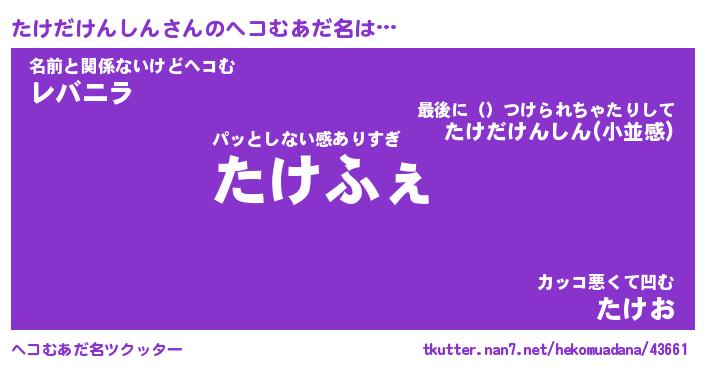 | ヒーロー風カッコイイあだ名 | 『スーパータケダケンシン』 |