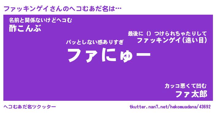 | 男性向けラノベタイトル風あだ名 | 『ファッキンゲイの憂鬱』 |