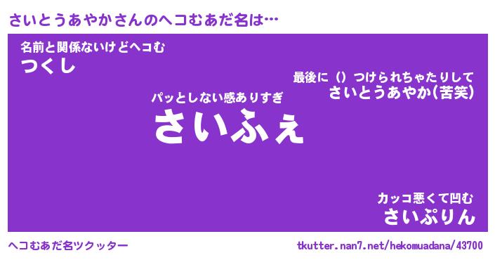 | 意味不明あだ名 | 『ペロリンさいとうあやか』 |