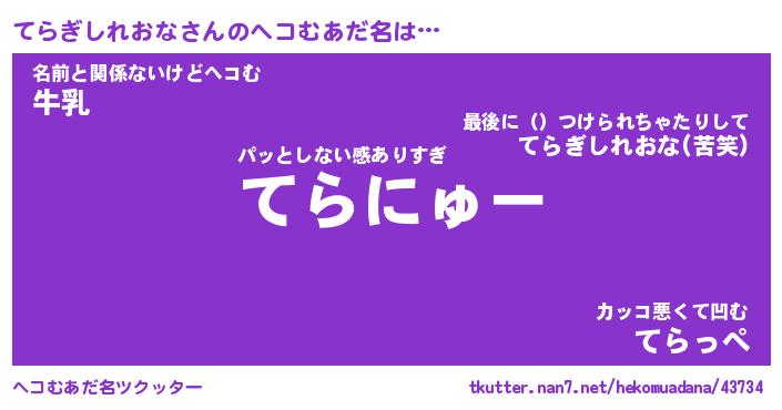 | 意味不明あだ名 | 『ペロリンてらぎしれおな』 |