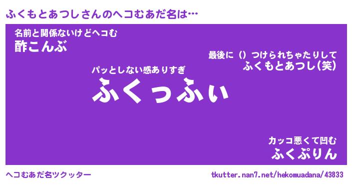 | ヒーロー風カッコイイあだ名 | 『スーパーフクモトアツシ』 |