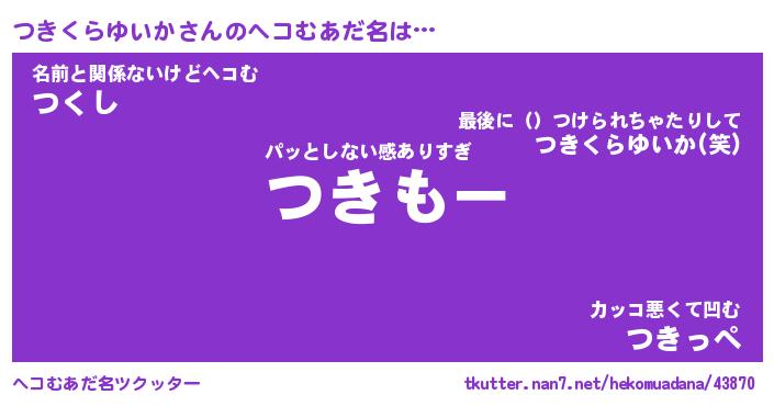| 恥ずかしいあだ名 | 『プリティーつきくらゆいか』『つきちん』 |