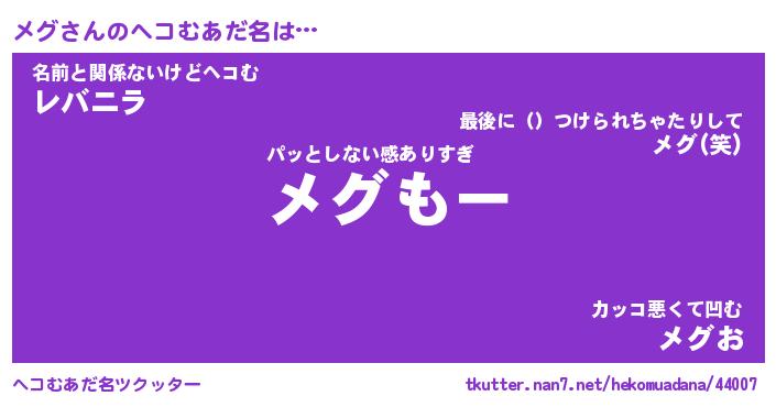 | 意味不明あだ名 | 『ペロリンメグ』『メグフォーエバー』 |