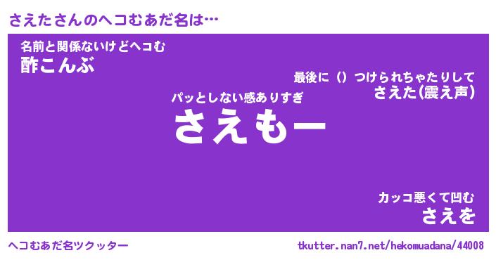 | ポケモン風あだ名 | 『サエチュウ』『サエタダネ』 |
