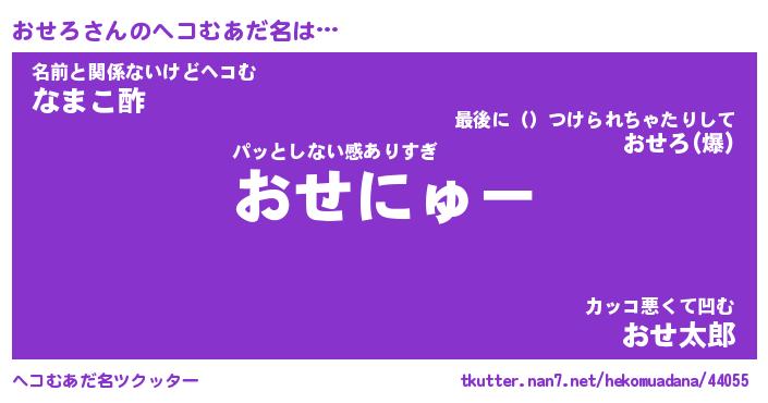 | ポケモン風あだ名 | 『オセチュウ』『オセロダネ』 |
