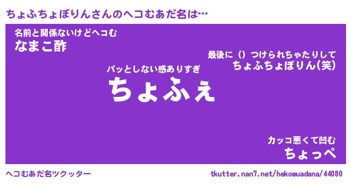 | 胡散臭い通販商品みたいなあだ名 | 『モテモテ間違いなし水晶球…その名も「ちょふちょぼりん」』 |