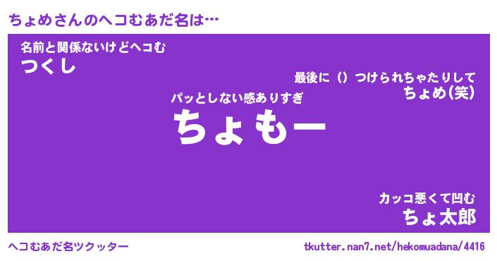 | ポケモン風あだ名 | 『チョチュウ』『チョメダネ』 |