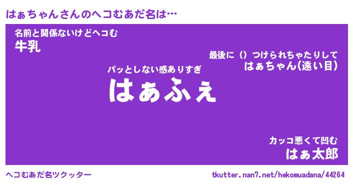 | ヒーロー風カッコイイあだ名 | 『スーパーハァチャン』『幻影騎士ハァ』 |