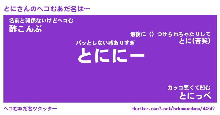 | 男性向けラノベタイトル風あだ名 | 『とにの憂鬱』『ノーゲーム・ノートニ』 |