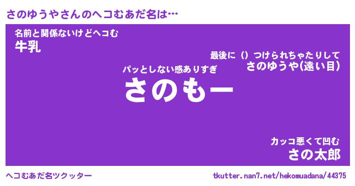 | ヒーロー風カッコイイあだ名 | 『スーパーサノユウヤ』『幻影騎士サノ』 |