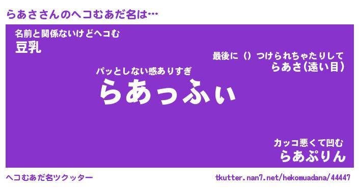 | 2回繰り返すあだ名 | 『らあらあ』『ららああ』『ぬれぬれ』 |