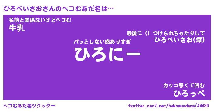 | 男性向けラノベタイトル風あだ名 | 『ヒロベイサオアートオンライン』 |