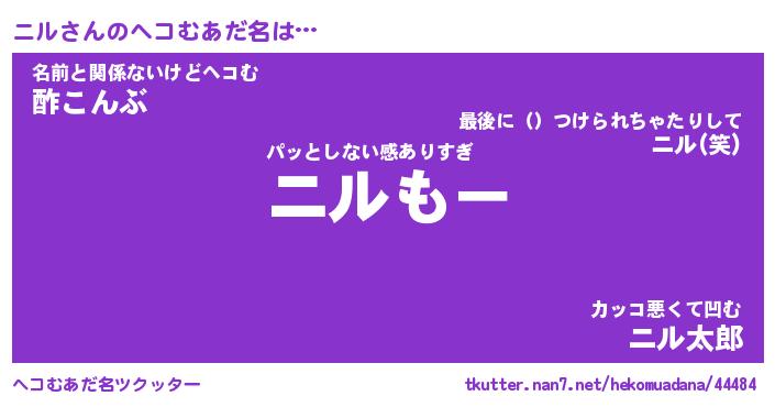 | 男性向けラノベタイトル風あだ名 | 『ニルの憂鬱』『ノーゲーム・ノーニル』 |