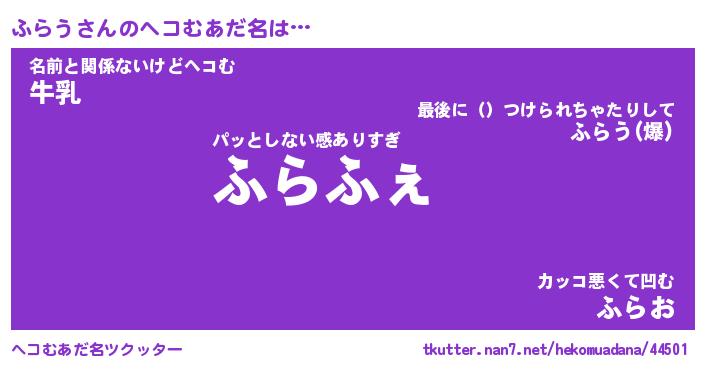 | ヒーロー風カッコイイあだ名 | 『スーパーフラウ』『ウルトラふらうマン』 |