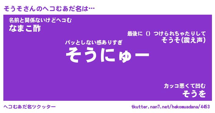 | ポケモン風あだ名 | 『ソウチュウ』『ソウソダネ』 |