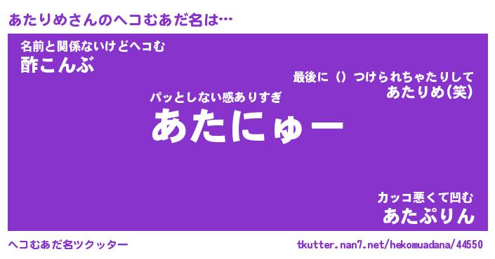 | ファンタジー風あだ名 | 『アタフェル』『エターナルアタリメー』 |