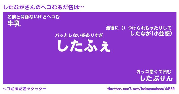 | 男性向けラノベタイトル風あだ名 | 『したながの憂鬱』 |