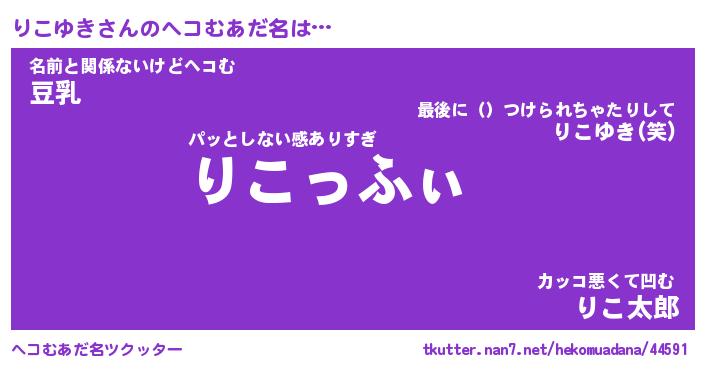 | 男性向けラノベタイトル風あだ名 | 『りこゆきの憂鬱』 |