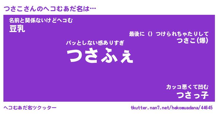 | 男性向けラノベタイトル風あだ名 | 『つさこの憂鬱』 |