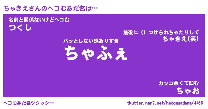ファンタジー風あだ名 | 『チャフェル』『エターナルチャキエー』 |