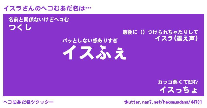 | ポケモン風あだ名 | 『イスチュウ』『イスラダネ』 |