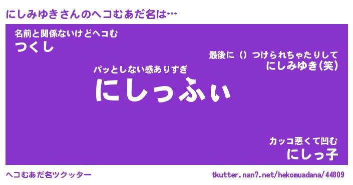 | 胡散臭い通販商品みたいなあだ名 | 『必ず成功する霊験あらたかなお札…その名も「にしみゆき」』 |