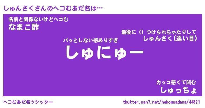| 2回繰り返すあだ名 | 『しゅしゅ』『ししゅゅ』『ぬれぬれ』 |