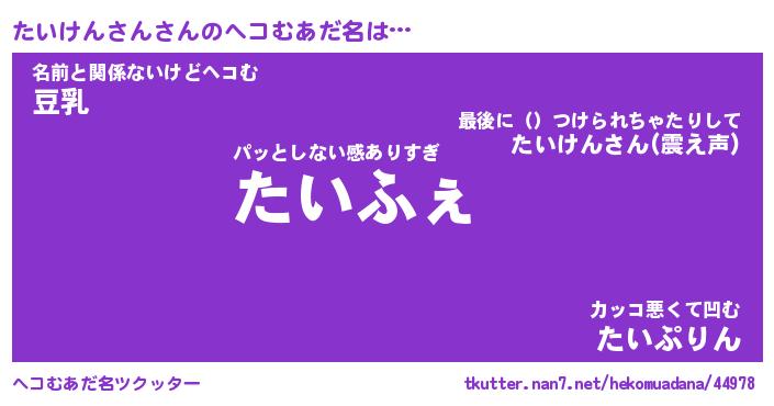 | 2回繰り返すあだ名 | 『たいたい』『たたいい』『きこきこ』 |