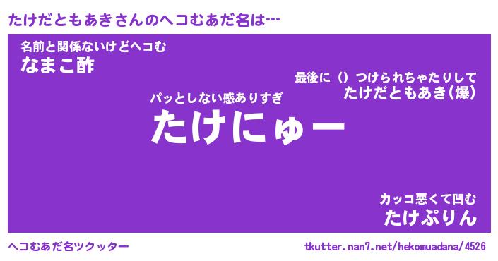 | ヒーロー風カッコイイあだ名 | 『スーパータケダトモアキ』 |