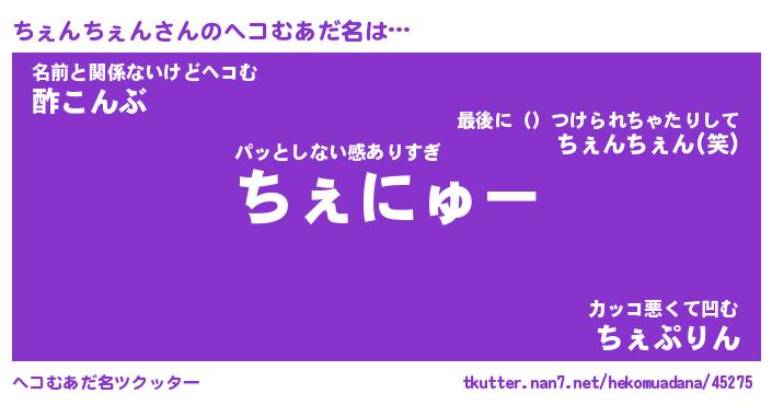 | ポケモン風あだ名 | 『チェチュウ』『チェンダネ』 |