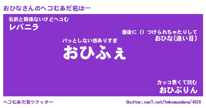 | ファンタジー風あだ名 | 『オヒフェル』『エターナルオヒナー』 |