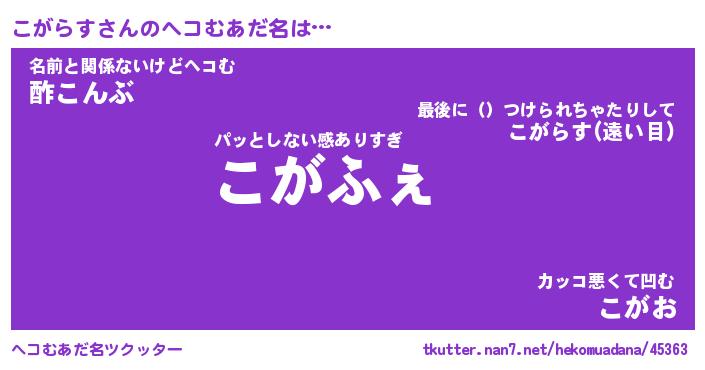 | 意味不明あだ名 | 『ペロリンこがらす』『永久保存こがらす』 |