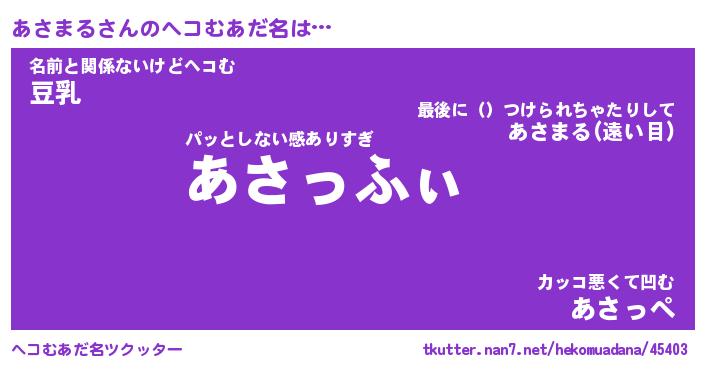 | 意味不明あだ名 | 『ペロリンあさまる』『永久保存あさまる』 |