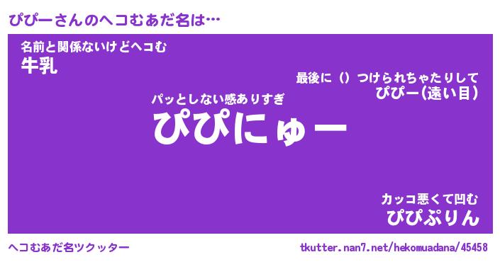 | 2回繰り返すあだ名 | 『ぴぴぴぴ』『ぴぴぴぴ』『なあなあ』 |