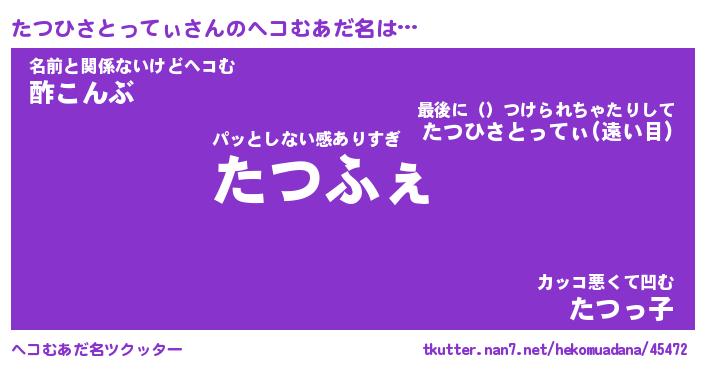| ポケモン風あだ名 | 『タツチュウ』『タツヒダネ』 |