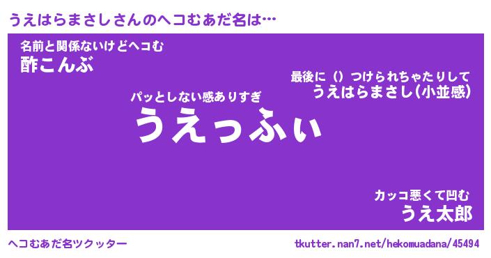 | ポケモン風あだ名 | 『ウエチュウ』『ウエハダネ』 |