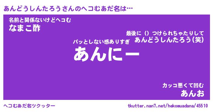 | 意味不明あだ名 | 『ペロリンあんどうしんたろう』 |