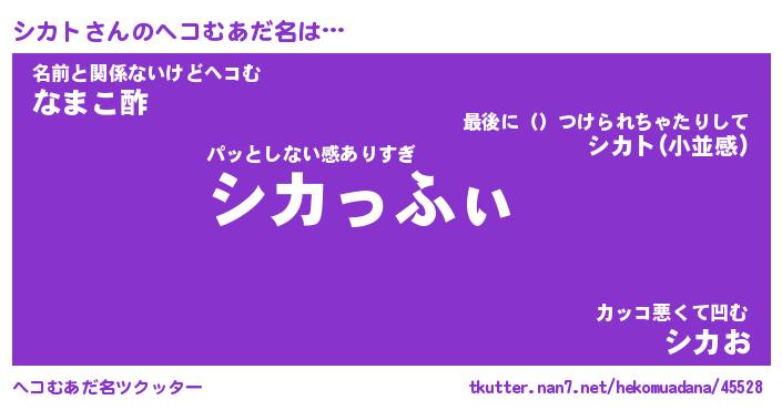| ヒーロー風カッコイイあだ名 | 『スーパーシカト』『ウルトラシカトマン』 |