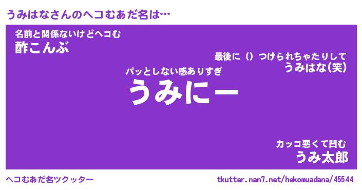 | ファンタジー風あだ名 | 『ウミフェル』『エターナルウミハナー』 |