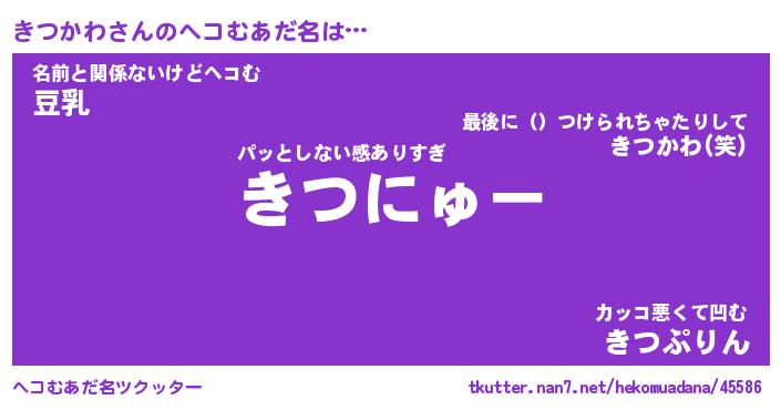 | 男性向けラノベタイトル風あだ名 | 『きつかわの憂鬱』 |