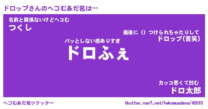 | ファンタジー風あだ名 | 『ドロフェル』『エターナルドロップー』 |