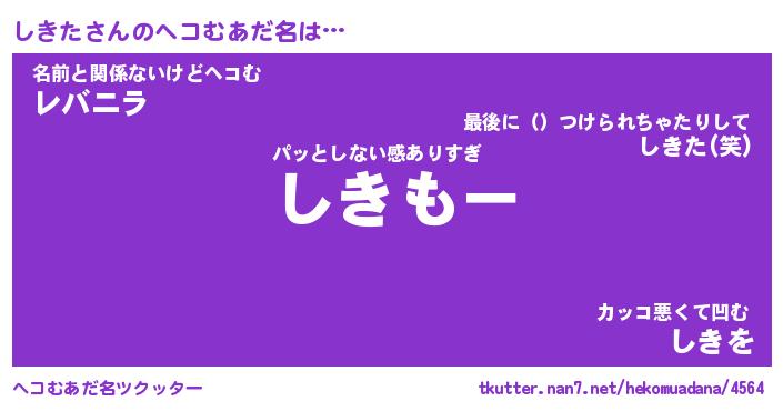 | 男性向けラノベタイトル風あだ名 | 『しきたの憂鬱』 |