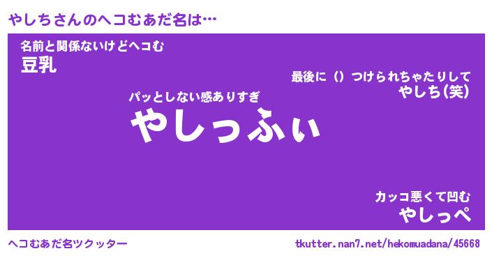 | ヒーロー風カッコイイあだ名 | 『スーパーヤシチ』『ウルトラやしちマン』 |