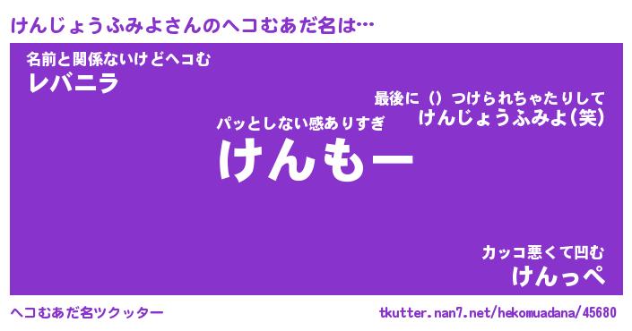 | ヒーロー風カッコイイあだ名 | 『スーパーケンジョウフミヨ』 |