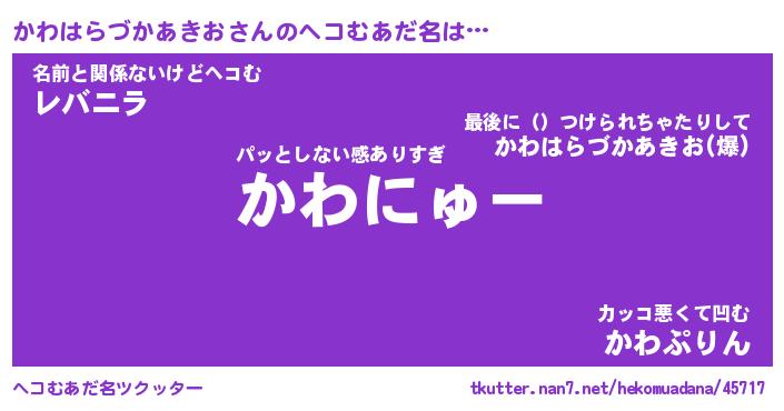 | 意味不明あだ名 | 『ペロリンかわはらづかあきお』 |