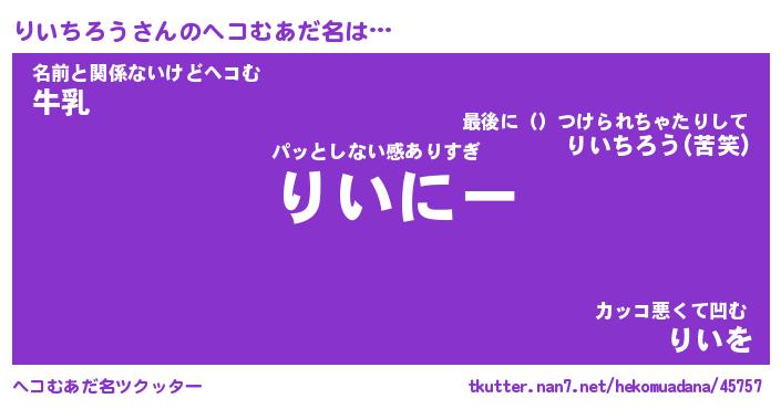 | ファンタジー風あだ名 | 『リイフェル』『エターナルリイチロウー』 |