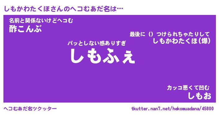 | 意味不明あだ名 | 『ペロリンしもかわたくほ』 |