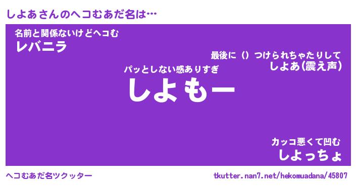 | ポケモン風あだ名 | 『シヨチュウ』『シヨアダネ』 |