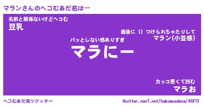 | 男性向けラノベタイトル風あだ名 | 『マランの憂鬱』 |