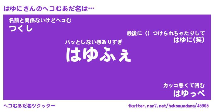 | ヒーロー風カッコイイあだ名 | 『スーパーハユニ』『ウルトラはゆにマン』 |
